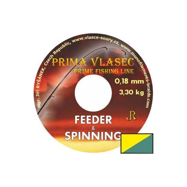 U vlasců pro lov na feeder a přívlačí (zejména s měkkými nástrahami, jako jsou twistery, rippery a podobně) vítáme hlavně nižší průtažnost (do 20%), která je předpokladem dobrého kontaktu s nástrahou. Signální - zde žlutá - barva vlasce nám umožní vedení nástrahy v těsné blízkosti ponořených větví, balvanů či jiných překážek, kde se často skrývají ty největší kusy.